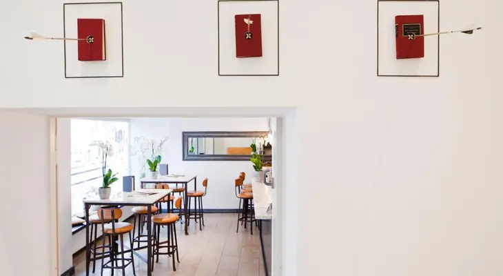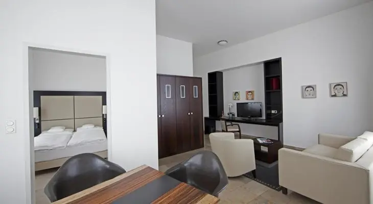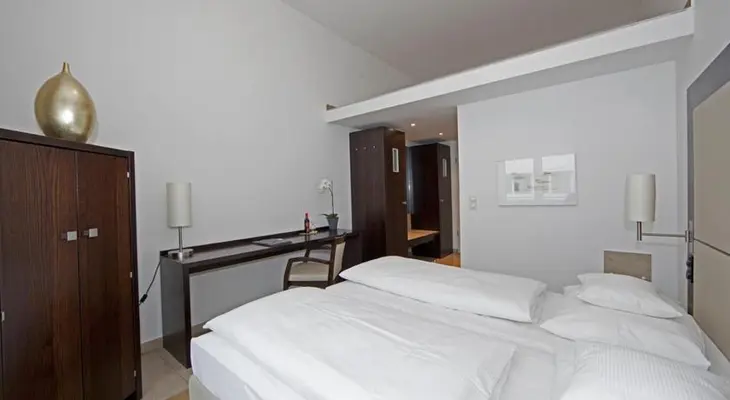"Crisp, clean lines and sober colours distinguish the rather masculine decor of this “art hotel” between Königsallee and the Hauptbahnhof. Weekend rates are lower, and they also have apartments."