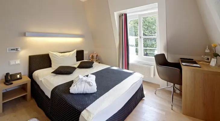 "This pretty hotel in a 19C town palace sits in a quiet corner of the Altstadt. The bright rooms are minimalist but comfortable and each is named after difference artist."