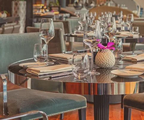 "Features a high-ceilinged, bright, airy interior along with stunning views of the Düsseldorf skyline. Though the decor may tend toward the elegant-minimalist, the menu is rather decadent. " Full review