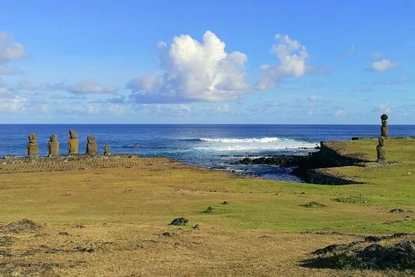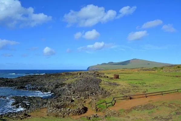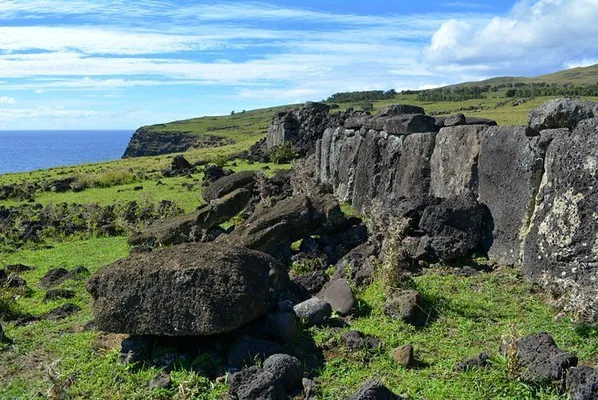 This large ahu has several fallen moai and a village site with foundations of hare paenga (elliptical houses) and the walls of several round houses, consisting of loosely piled stones. — Lonely Planet