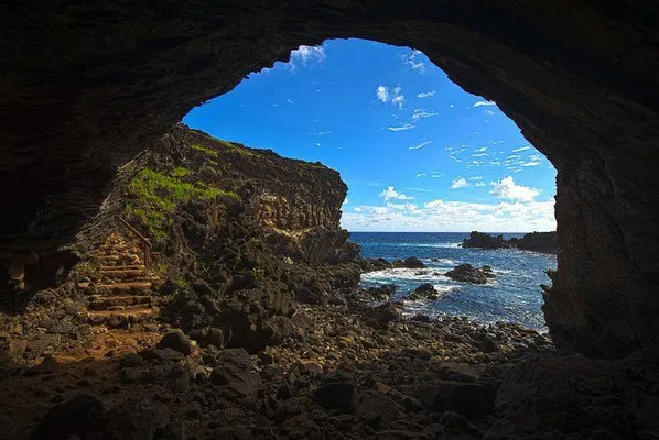 Off the dirt road to Akivi, Ana Te Pahu comprises former cave dwellings with an overgrown garden of sweet potatoes, taro and bananas. — Lonely Planet