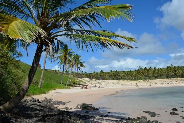 This is an awesome sandy spot for swimming, snorkeling, scuba-ing in calm, balmy water with the backdrop of a row of the famous moai figures. — Afar Magazine