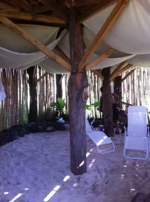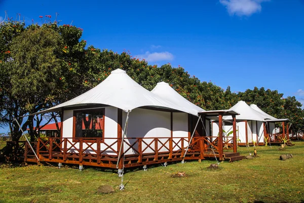 The clubhouse at this new 'lodge' in the remote Caleta Vaihu sector is a stunner with wood-carved columns, stone walls and tree trunks for tables. — Lonely Planet