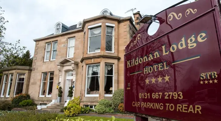 “The 15-room Kildonan Lodge Hotel is a family-owned upper-middle-range property located just outside of Edinburgh's city center and about a seven-minute bus ride to the Royal Mile.”