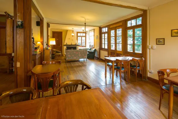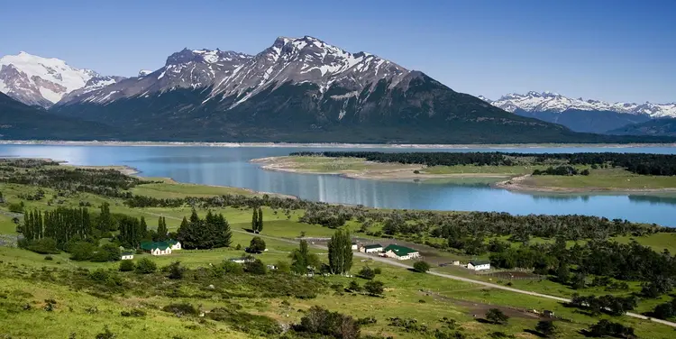 “Sheep, horses, and cows graze among purple lupine flowers, and friendly gauchos give horse-racing and sheep-shearing demonstrations.”
