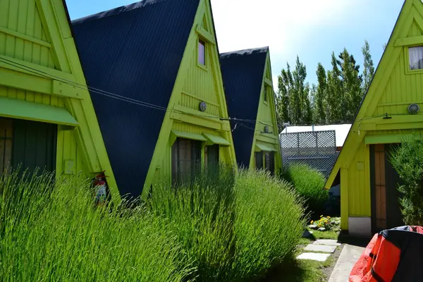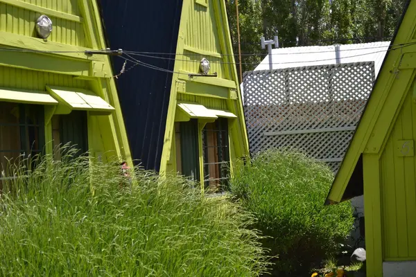 “A restful spot that has snug storybook A-frames with spiral staircases leading to loft beds and apartments.”