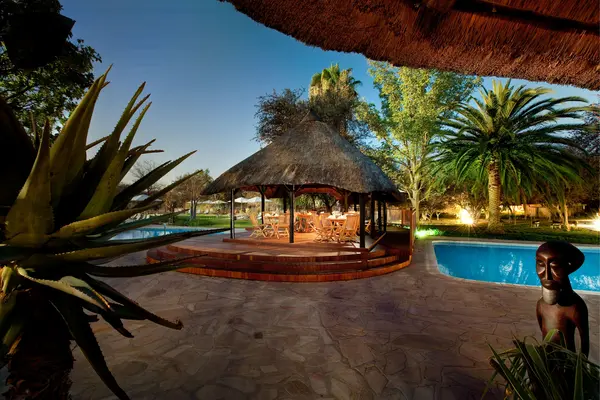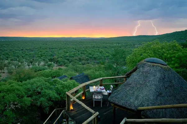 On the southern boundary of Etosha close to the Anderson Gate, this lodge has its own surrounding game reserve. — Fodor's