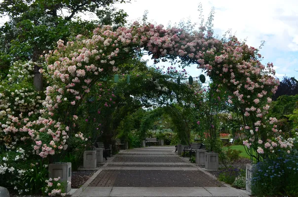 “At this 8.5-acre riverfront park more than 4,500 roses representing some 300 varieties bloom along curving paths.”