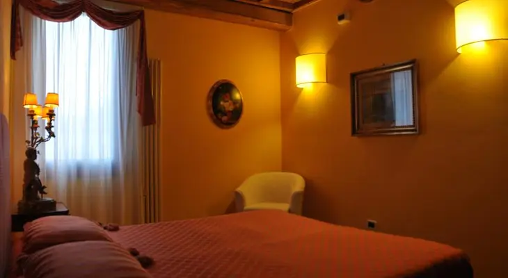 “Close to the Palazzo dei Diamanti, this gorgeous apartment complex set in a 19th-century building features antique furniture, Persian rugs, and oak-beamed ceilings.”