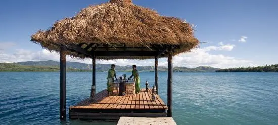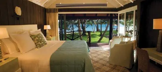 "For a real rockstar retreat, escape to exclusive-hire Dolphin Island boutique hotel, perched on a petite isle just north of Fiji's main island Viti Levu."