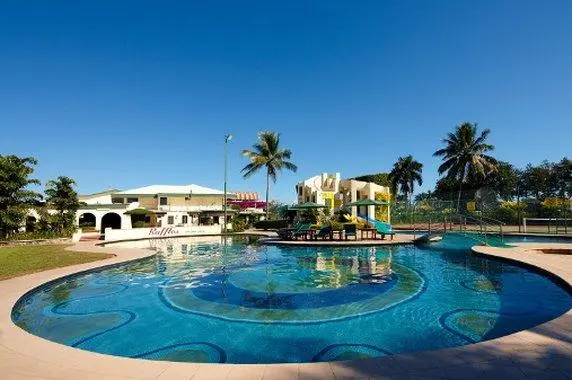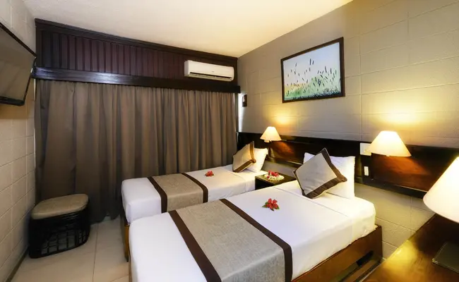 “Renovated in 2014, this spacious mid-range, 95-room hotel is about as close to Nadi's airport as it gets -- it's literally across the street.”