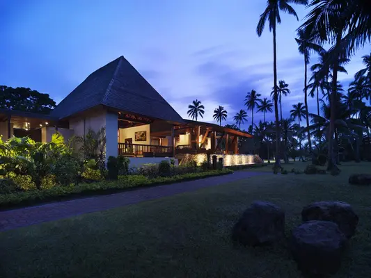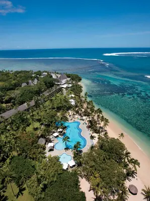 "Anchored offshore on its own private island, this resort is one of the Coral Coast’s premier (and biggest) hotels." Full review