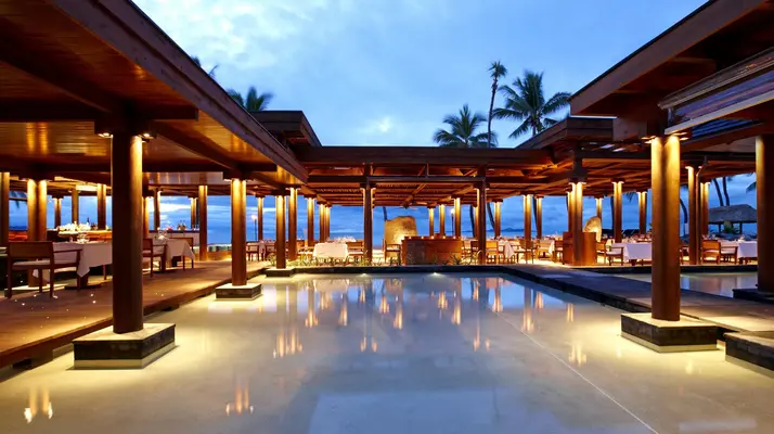 “Spread across 25 acres of tropical garden, the beachfront Sheraton Fiji Resort is part of a three-property complex that also includes the Sheraton Denarau Villas and Westin Denarau Island Resort & Spa.”