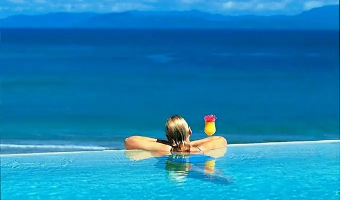“Some of the sexiest bure in Fiji and dramatic cliff-top ocean views draw honeymooners and couples to this all-inclusive.”