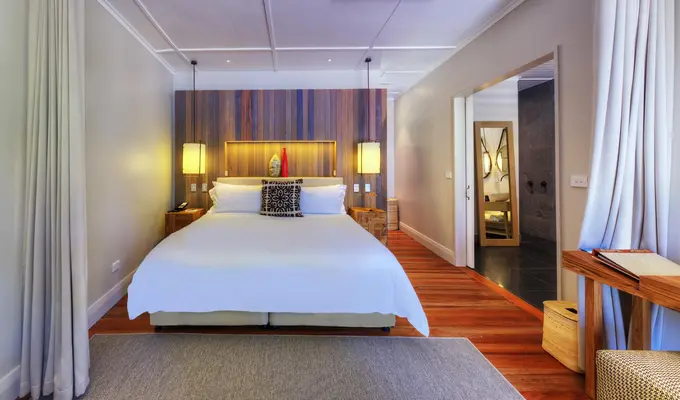 "The bures are stunningly appointed in dark-brown Pacificana with separate living areas and Jacuzzis: those by the beach are walk-in-flippers-close to the water." Full review