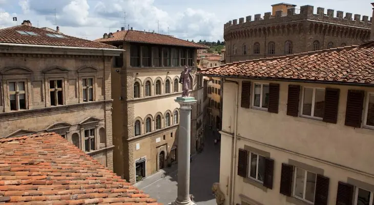 “Fashion insiders love these 28 characterful rooms... surrounded by haute couture boutiques and across a small piazza from the fresco-filled Santa Trinità church.”