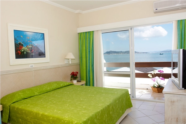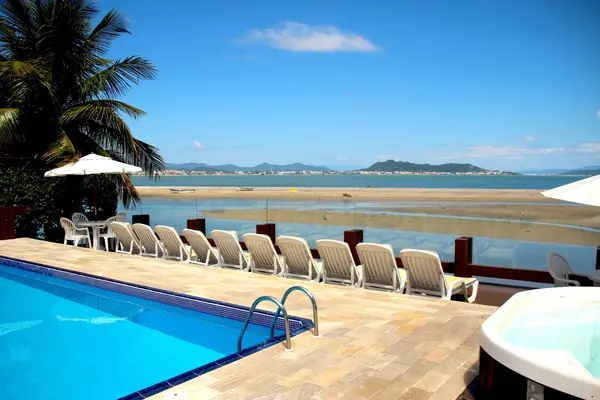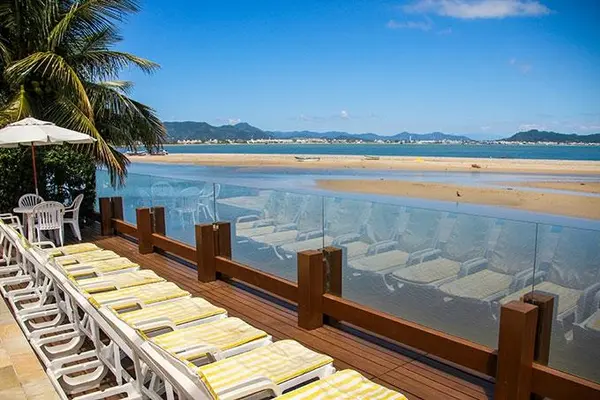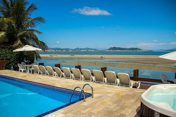 “Cozy up in the poolside Jacuzzi to watch an epic sunset over the mainland at this hotel on the northern tip of Florianópolis.”