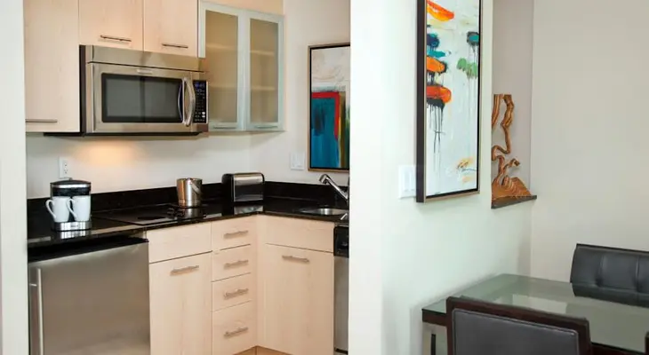 "The all-suite hotel is filled with furnishings that are simple yet functional."