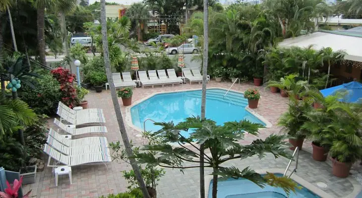 “One of the area's many gay inns, this retro place... has sleek and thoroughly modern rooms, and a well-trafficked (clothing-optional) pool area. The resort is inland from the beach.”