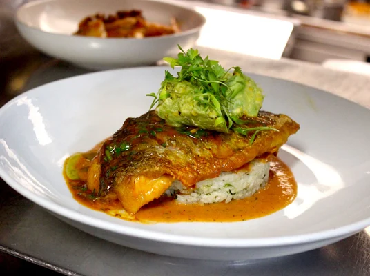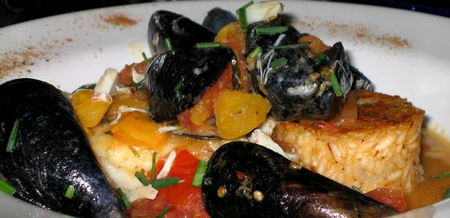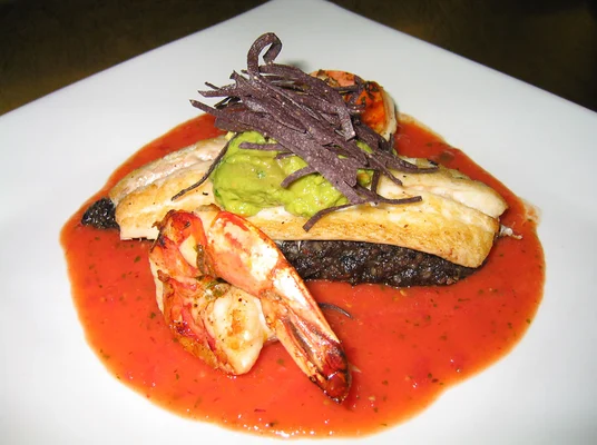 "As for the food, entrée standouts include a shrimp-and-scallop burrito and a marinated Chilean seabass with tomatoes, crab meat and mussels."