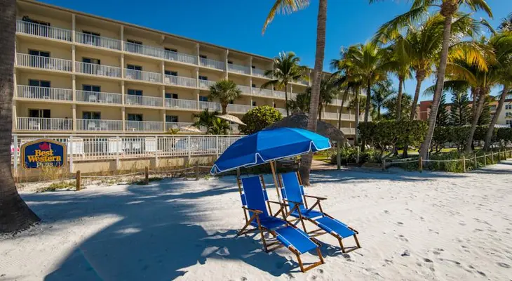 “Best Western Plus Beach Resort in Fort Myers is a 75-room, mid-range hotel where guests can walk out the front door and find themselves right on the beach.”
