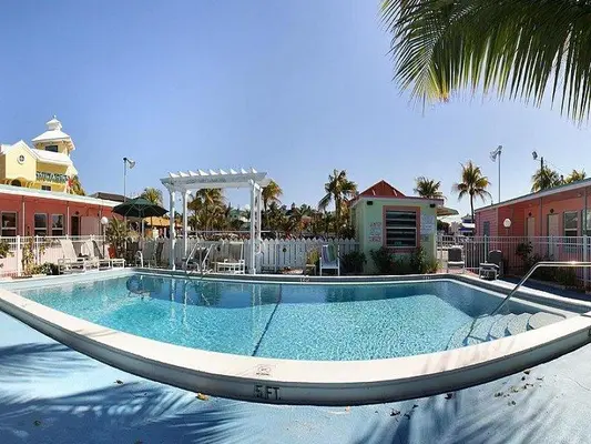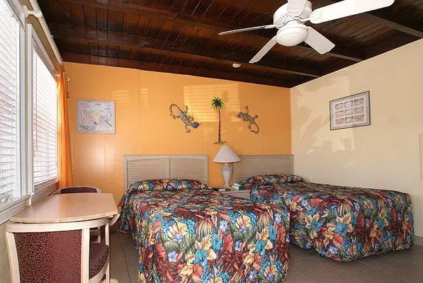 “On the lagoon, a block from the popular Times Square area and the Gulf, this motel offers standard rooms and suites, with two pools. $100.”