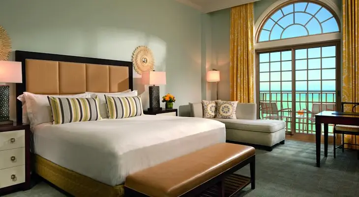 “Mediterranean-inspired beachfront resort—Ritz-Carlton’s flagship near the Gulf of Mexico—with a 51,000-square-foot spa, access to premier golf, and a kid-friendly entertainment center.”