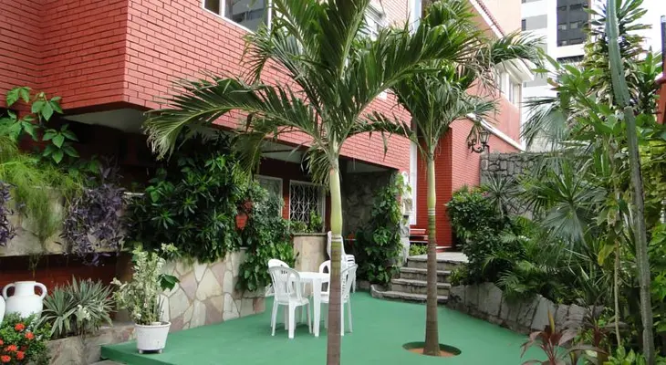 "This thirteen-room pousada is in a tastefully converted house just a few blocks from the beach; the rooms are pleasant and have TVs, telephones and a/c."