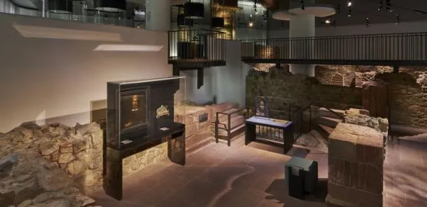 Built on the site of the Bornerplatz Synagogue, destroyed in 1938, and the foundations of mostly 18th-century buildings that were once part of the Jewish quarter, or Judengasse. — Fodor's