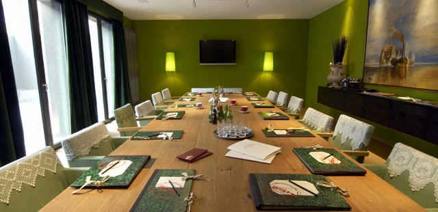 "Germany's media and art luminaries favor this 49-room hotel's color-saturated, mischievous design (the lamps are penguins wearing shades on their heads) and its boisterous bar scene." Full review