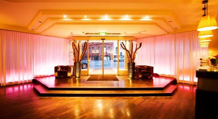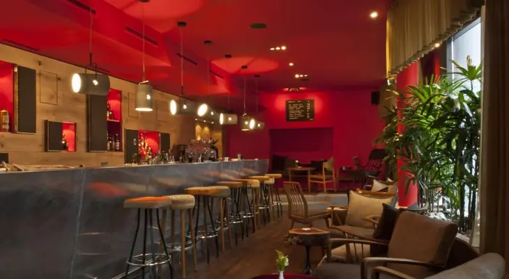 "A conveniently located hotel with a modern interior in warm colours. The break-fast room has a pleasant terrace. There is also a cosy bar with snacks."