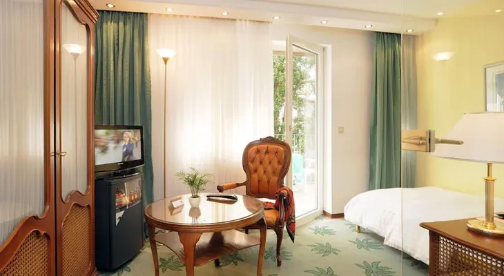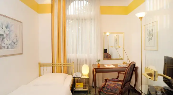"This privately run hotel in the banking quarter was built in 1890. Behind its Grunderzeit facade it houses pretty rooms furnished with antiques from various periods."