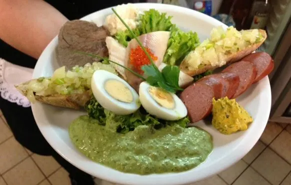 “Menu items include crisp Schnitzel, freshly made salads, grilled steaks with peppercorn sauce, roulades of beef or pork stuffed with herbs and bread crumbs.”
