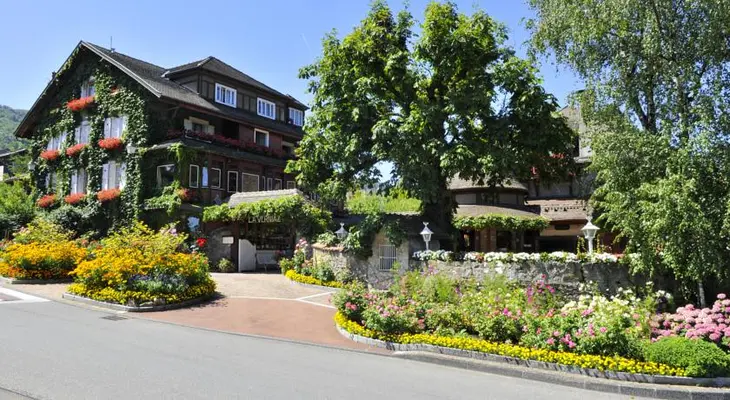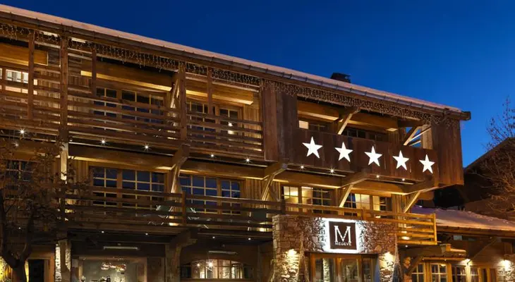 Enchanting hotel of nine chalets assembled from original timbers and pine paneling from old structures acquired throughout the French Alps, offering a beautiful fantasy of Alpine life. — Hideaway Report