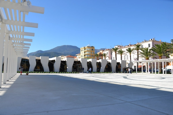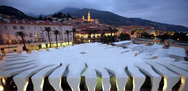 “Built on the seafront, the building designed by Rudy Riciotti is surrounded by a spectacular façade adorned with white cut-out forms.”