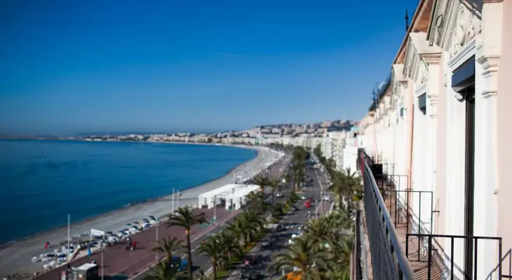Chair-clad wrought-iron balconies strategically placed on five floors overlooking the sweeping Bay of Angels are reason enough to stay at this attractive, three-star hotel on the prom. — Lonely Planet