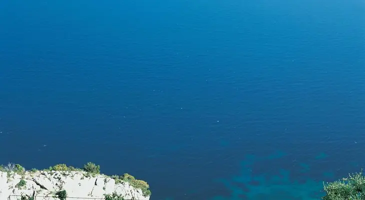 "The blue of the sea and sky seem to melt into each other at this idyllic refuge."