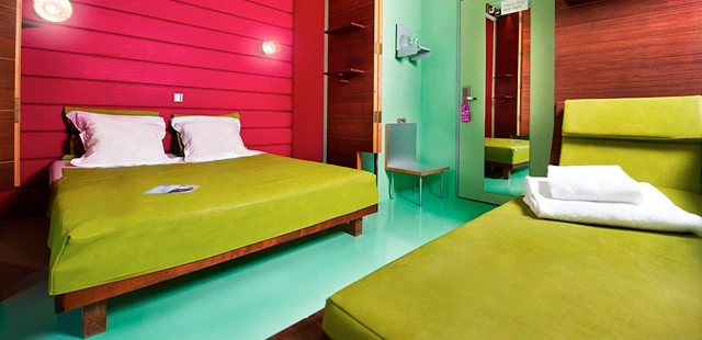 "Situated in a posh residential neighborhood and set back from the water in Nice, the Hi was designed by Matali Crasset, one of Philippe Starck’s protégés." Full review