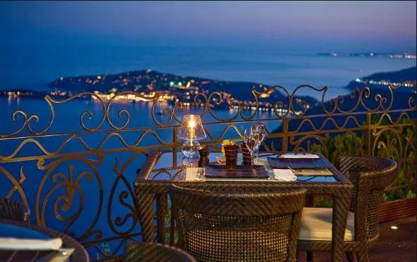 Perched on the vantage point of Èze, the famous Château de la Chèvre d'Or's gourmet restaurant enjoys an idyllic location, facing the azure of the sea and the sky. — Michelin Guide