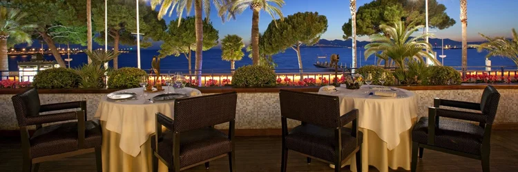 "In the sumptuous Art Deco setting of the Hotel Martinez, diners look down on La Croisette from a gastronomic peak." Full review