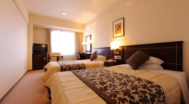 “Rooms are well-appointed with dark mahogany furnishings, extra-long beds and Internet hook-ups. Best of all is the central location, adjacent to Tenjin's business and nightlife scene.”