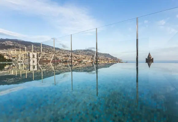 “Offers 81 rooms and a lap pool with panoramic views over the bay. Located in the historical centre of Funchal, it is steps away from the city’s main sights.”