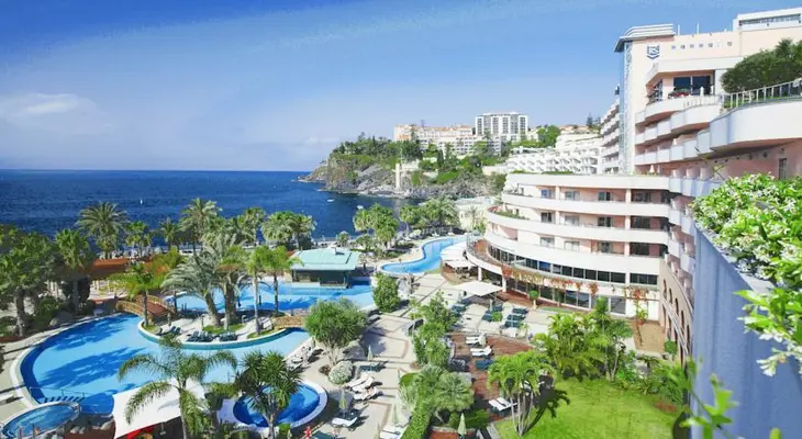 “The 174-room Royal Savoy Hotel is an upscale resort-style property overlooking the sea, located a 15-minute walk from Marina Funchal.”