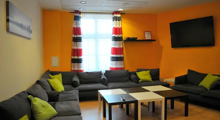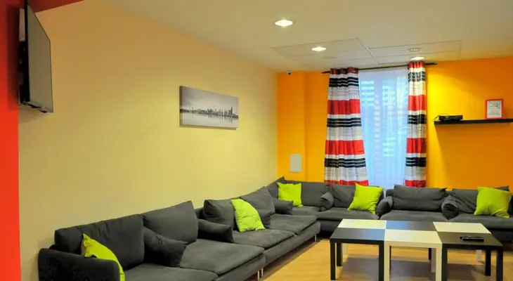 “Big, modern, colourful hostel near the train station, with high ceilings, pleasant common areas, a kitchen, and a lounge with a view.”