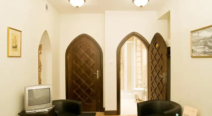 "This neat, Gothic-themed guesthouse is squeezed into Gdańsk’s oldest building...the seven compact rooms have Gothic touches such as pointy-arched doorways and hefty drapery" Full review