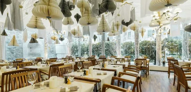 “At tables set close together, both in the dining room and on the terrace, feast on hearty classics such as oysters, calf's head and choucroute!”