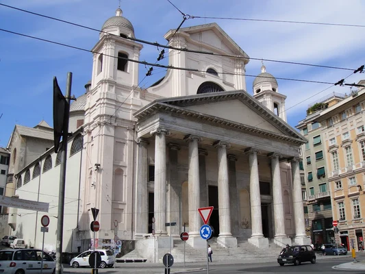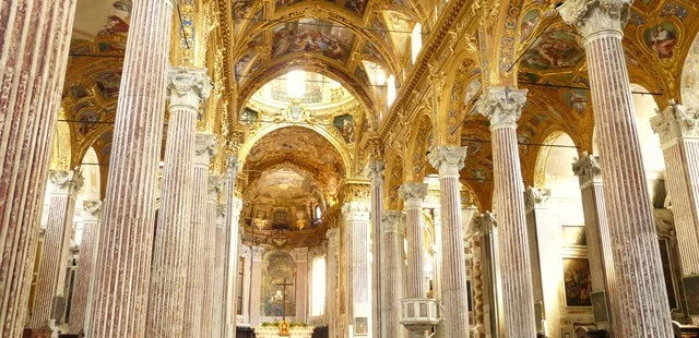 “Exuberantly frescoed vaults decorate the 16th- to 17th-century church, which is an excellent example of Genovese Baroque architecture.”