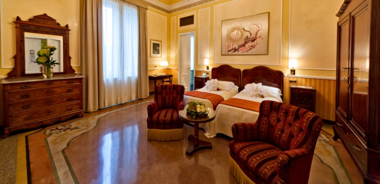 Original accents like parquet floors, Murano chandeliers, and marble columns complement overstuffed leather chairs and carved wooden tables, all contributing to a pervasive sense of drama and history. — Afar Magazine