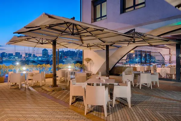 “Right on the old port, in the marina complex designed by renowned architect Renzo Piano, the Jolly Hotel Marina faces the aquarium.”