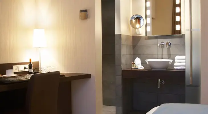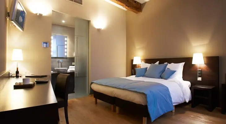 “Swish modern colours lie beneath the 18th-century beams of this old-meets-new beauty. Each of the 25 rooms has a coffee maker and even the smallest is amply sized, but shapes and views vary.”